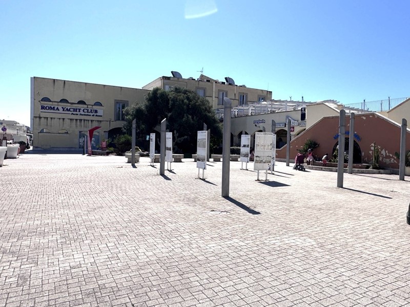 La posizione è centrale, a pochi metri dal parcheggio esterno del Porto, strategica per il commercio, con doppio ingresso e con vista diretta sui pontili del Marina di Roma.