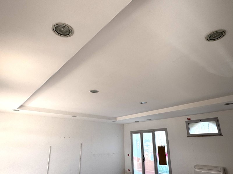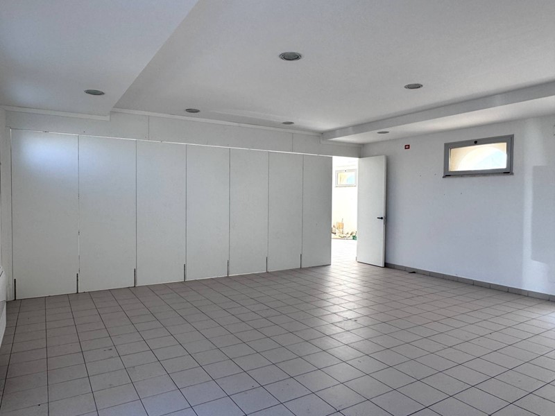 Spazio espositivo open space, attualmente suddiviso in due ambienti tramite parete in pannelli rimovibile