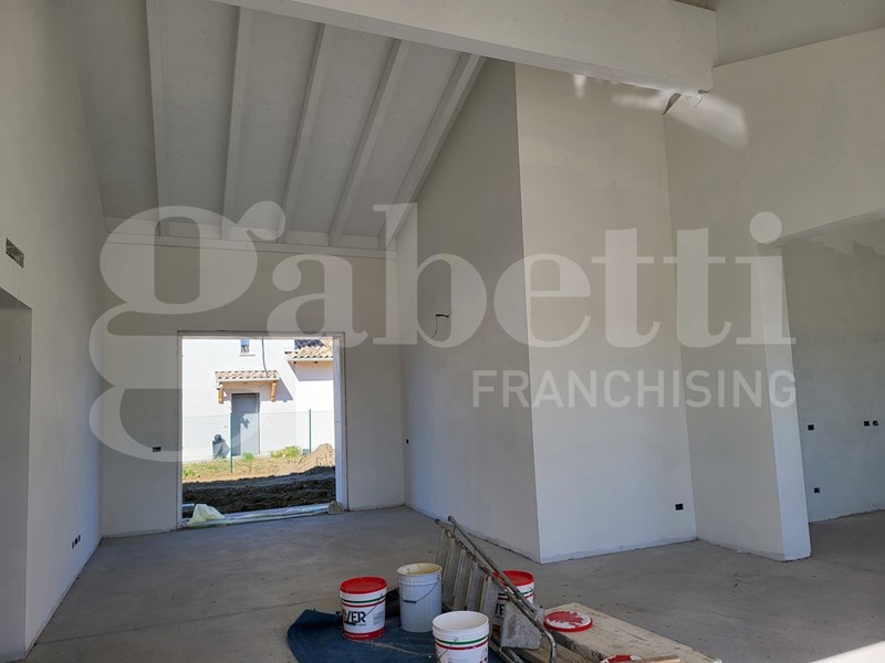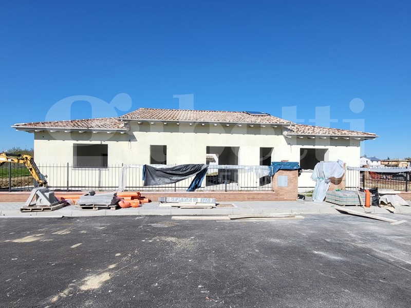 Sant'Agata Bolognese: Gabetti San Giovanni in Persiceto propone ULTIMA villa monofamiliare interamente a piano terra di 200 MQ, composta da ingresso su sala, cucina abitabile, disimpegno, 3 camere, doppi servizi e possibilità di ulteriore camera nel piano soppalco. Soffitto con travi a vista, vano tecnico ed autorimessa di 18 mq. Accessoriata con riscaldamento a pavimento e fotovoltaico da 3 KW. Giardino privato di 400 mq.