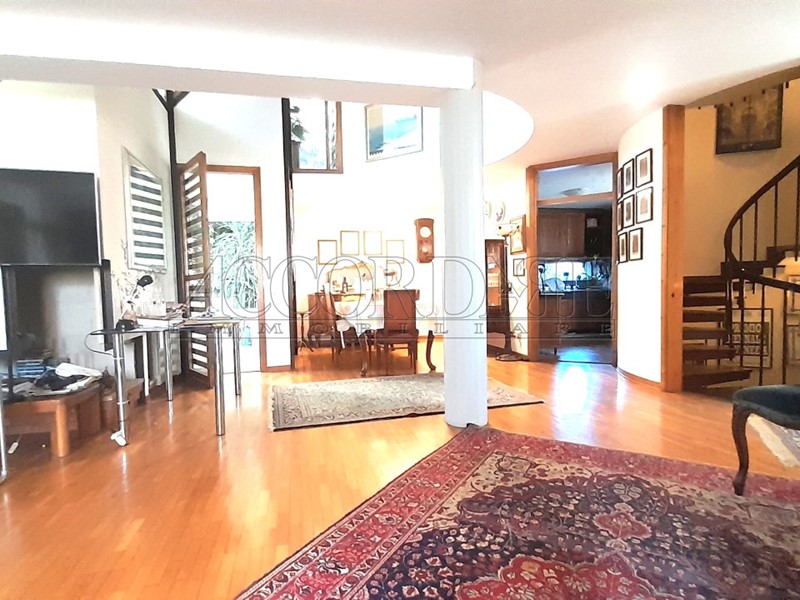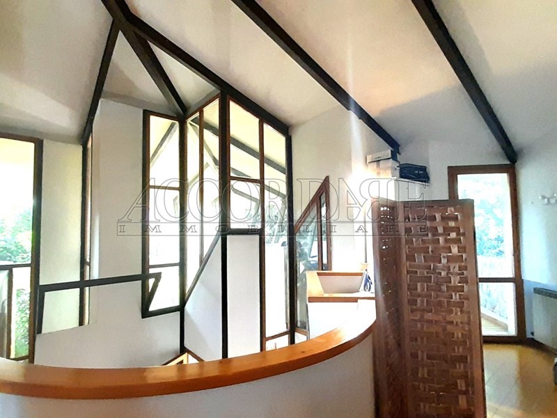 ABANO TERME, villa indipendente dallo stile unico caratterizzato da una struttura antisismica innovativa per l' epoca costituita da travi in ferro a vista lungo tutto il perimetro sorretti da pilastro centrale in calcestruzzo armato. Internamente, la soluzione presenta numerose finestre che favoriscono luminosità naturale costante che assieme al soppalco aggiungono profondità e fascino agli ambienti. Nel terrazzo coperto adiacente al soggiorno è presente un camino esterno che amplia le opportunità di convivialità in assoluta privacy. Il reparto notte comprende 3 camere da letto più un servizio mentre un garage triplo oltre un locale studio con entrata indipendente completano l' offerta. Esternamente spicca il giardino di 650 mq, completamente piantumato che circonda l'abitazione, ideale per momenti all'aperto con bambini e amici a quattro zampe. Altra caratteristica rilevante è la presenza di pozzo artesiano funzionante, elemento utile in contesti residenziale. Classe F. € 455.000