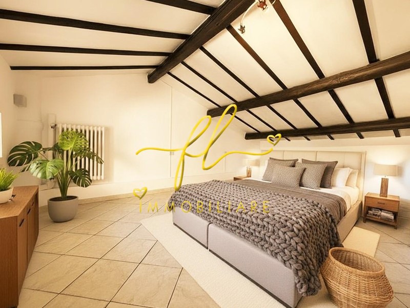 Al piano superiore, una seconda ampia camera con doppia cabina armadi e possibilità di creare un secondo bagno