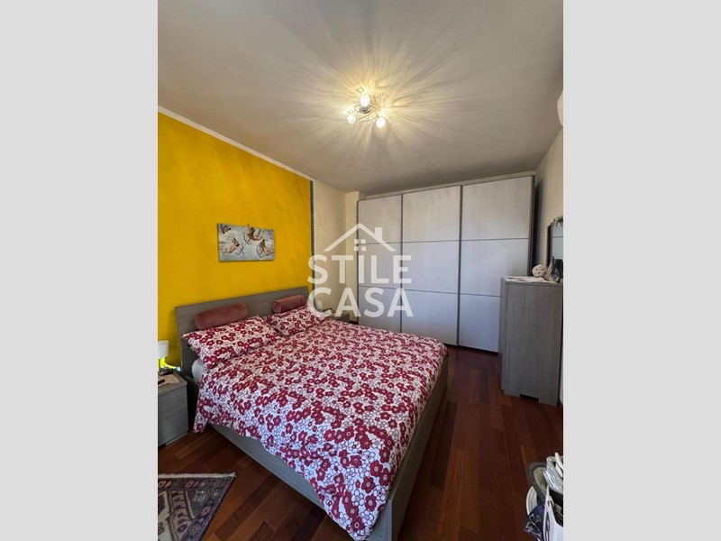 Primo Piano: Ampia camera matrimoniale con accesso al balcone e bagno finestrato elegante e funzionale.