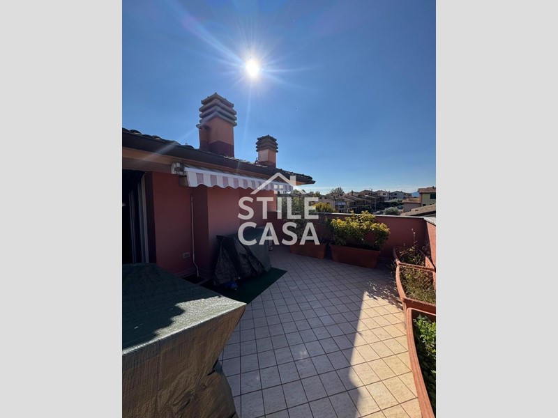 Secondo Piano (mansardato): Due vani distinti attualmente utilizzati come seconda camera matrimoniale con cabina armadi e bagno aggiuntivo. A completare il piano, una bellissima terrazza abitabile con angolo lavanderia e vano tecnico, perfetta per momenti di relax all’aperto.