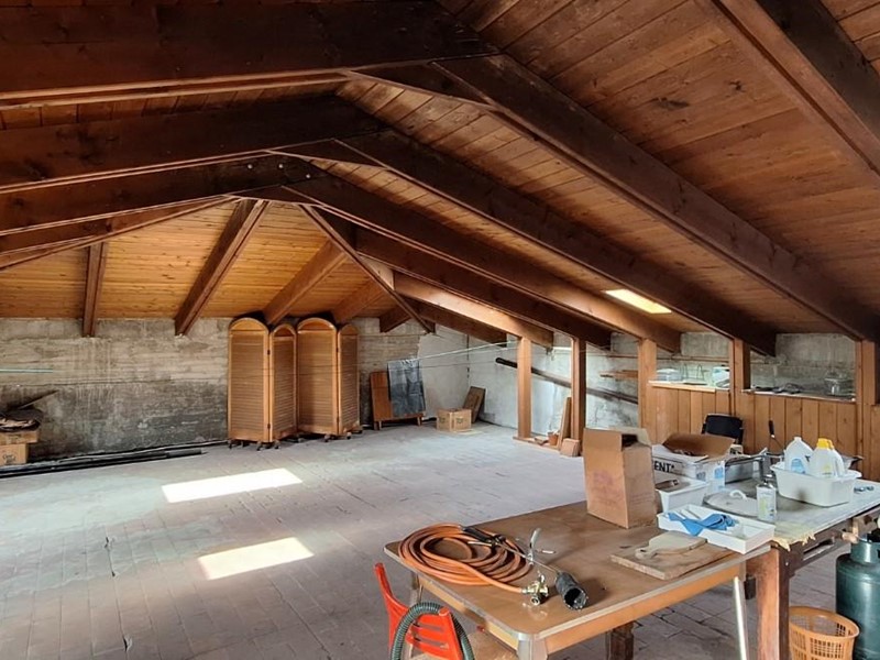 Il piano superiore a cui si accede con scale interne, offre una unità abitativa composta da ingresso, soggiorno, cucina, bagno e due camere. Ottimo come appartamento per i gestori della struttura oppure da adibire a ulteriori camere. La restante parte di piano adibita a piccolo albergo è composta da 3 camere matrimoniali di cui una con bagno privato, camera signola e bagno comune. Ampia soffitta da sfruttare con molte potenzialità.
