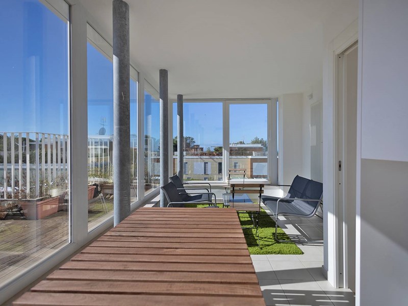 - Al piano soppalcato: salottino con ampie vetrate che si affacciano su una splendida terrazza vista mare