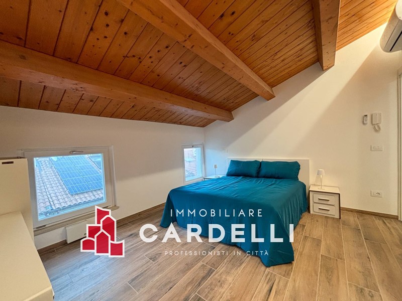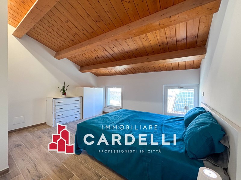 Ampia camera matrimoniale con tetto in legno a vista, accogliente e luminosa. Adiacente alla stanza si trova un vano multiuso: uno spazio versatile, adattabile a molteplici utilizzi.