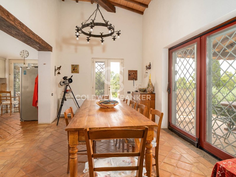 Una volta varcato il cancello carrabile, e percorso il viale alberato d'ingresso, si raggiunge la villa posizionata sul crinale della collina e tutta l'area esterna che la circonda, dove è possibile parcheggiare le autovetture al riparo sotto l'apposita tettoia, o percorrendo i vari viottoli in ghiaia, è possibile girare a piedi l'intero parco, costituito da numerose piante tipiche della macchia mediterranea, alberi ad alto fusto, aiuole e da 150 piante di ulivi; è possibile inoltre arrivare alla zona relax con il prato all'inglese e i gazebi dove è posizionata la piscina, trascorrendo dei pomeriggi in compagnia di parenti ed amici godendosi un po' di sole e rinfrescandosi di tanto in tanto in questa vasca d'acqua cristallina!
