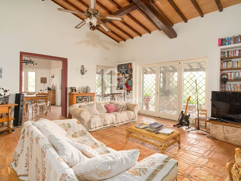 Oltre al grande parco, la proprietà presenta esterni di ampia metratura a livello dell'abitazione come per esempio i 125 mq di portico che costeggiano su due lati la villa, dal quale si ha l'accesso diretto alla casa, e che possono essere sfruttati da quasi tutti gli ambienti che compongono i 250 mq del piano terra, come ad esempio dal salone, cucina e tinello per cene all'aperto, rinfrescati dalla brezza della sera, o per una deliziosa colazione visto l'accesso da una delle camere presenti al piano.