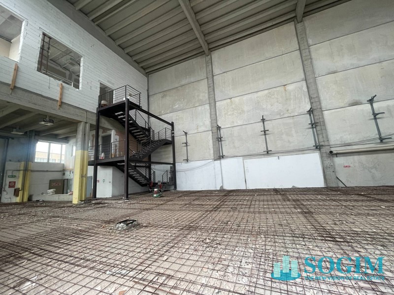 Limmobile è dotato di impianto fotovoltaico, impianti elettrico e termoidraulico nuovi, scala in ferro già installata (altezza oltre 6,5 metri) e serramenti nuovi già montati. Gli uffici sono completati al piano ammezzato e parzialmente finiti al primo piano. Le porte interne sono disponibili a magazzino.