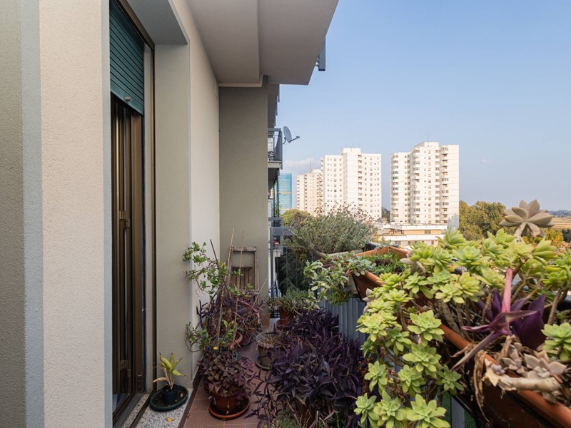 La soluzione sita ad un settimo piano con ascensore risulta così composta: ingresso, soggiorno con accesso al balcone, cucina abitabile con accesso al secondo balcone, disimpegno, 2 ampie camere da letto e bagno finestrato con box doccia.