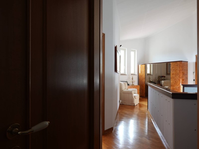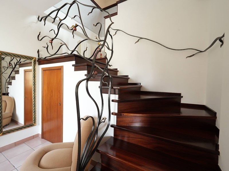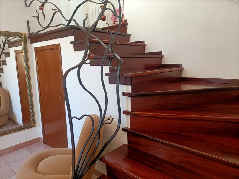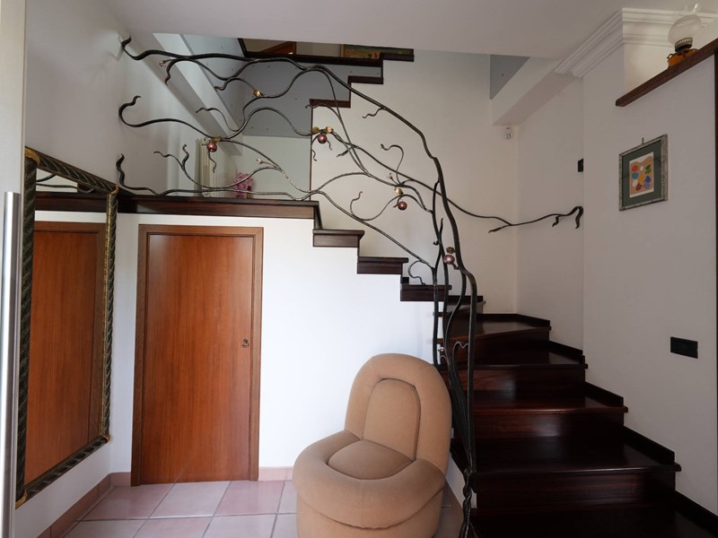 La villa si sviluppa su due livelli, piano terra e primo piano. Al piano terra troviamo un ingresso un ampio soggiorno/pranzo con affaccio sul giardino principale, una cucina abitabile, un ampio bucataio e un vano ripostiglio. Si accede al piano superiore da un scala interna con finiture di pregio, disimpegno, tre camere da letto di cui una con bagno in camera e un bagno, garantendo ampi spazi per una vita quotidiana confortevole e funzionale. Le camere da letto sono luminose e spaziose, dotate di balconi che offrono una bella vista sul giardino.