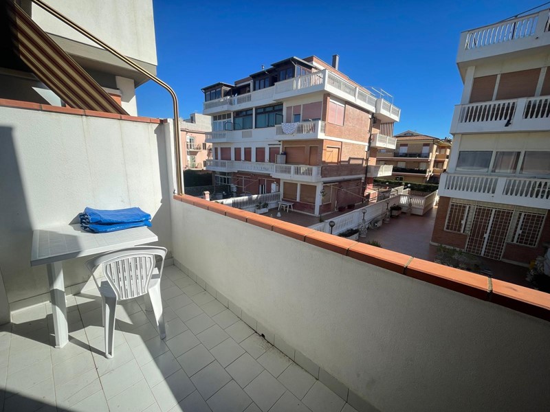 Marina di Ardea, precisamente in Lungomare Degli Ardeatini, appartamento posto al secondo piano a pochissimi metri dal mare, composto da: luminoso salone con angolo cottura e porta finestra che da accesso a un comodo balcone, camera matrimoniale anch'essa con porta finestra che accede a un secondo balcone e servizio finestrato con box doccia. Completa la proprietà un posto auto scoperto di proprietà.