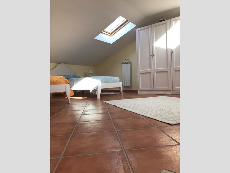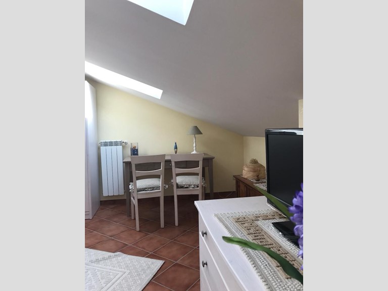 Entrando troviamo la cucina abitabile perfettamente attrezzata, una camera da letto e servizio. Al piano superiore una camera mansardata con lucernario.