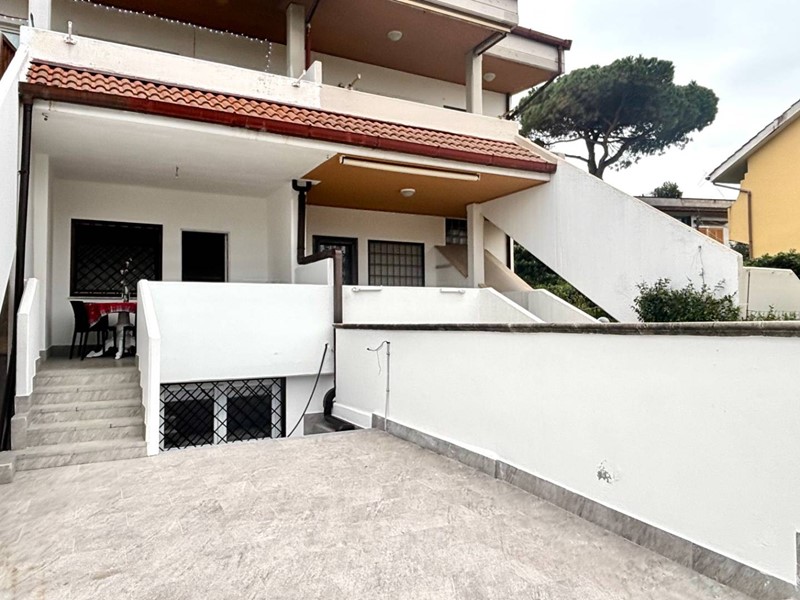 Marina di Tor San Lorenzo, in villa, due livelli con doppio giardino, box e posto auto esclusivo esterno scoperto.