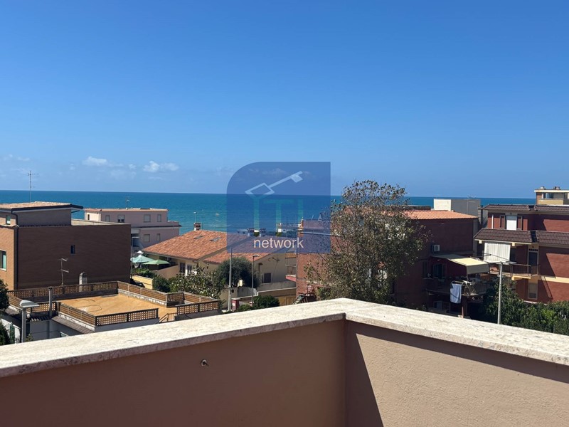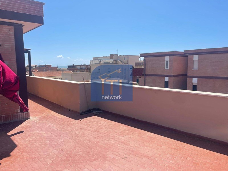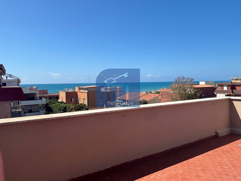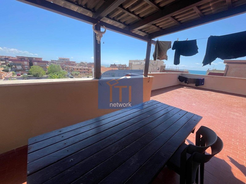 Torvaianica, precisamente in Via Svezia, attico, posto al terzo piano, con splendida vista mare e grande terrazzo panoramico, composto da ampio salone luminoso, cucina abitabile, entrambe con porta finestra che da accesso al terrazzo, camera matrimoniale e servizio finestrato con box doccia in muratura. Completa la proprietà un posto auto condominiale assegnato. Sul terrazzo è presente una tettoia in legno.