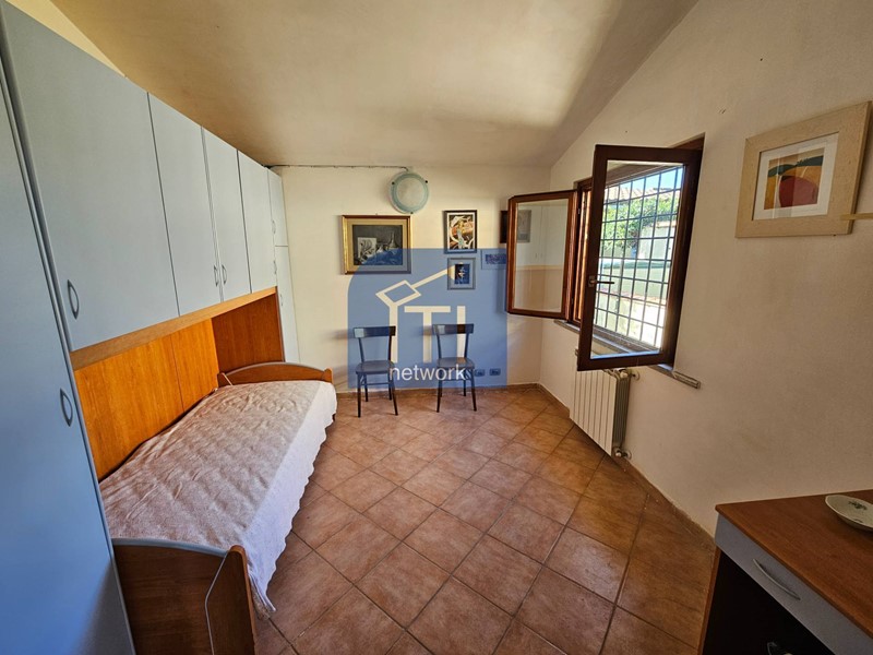 La villa è composta al piano rialzato da salone con affaccio sul patio con uscita al giardino, cucinotto con uscita sempre sul giardino, due camere da letto con finestra, doppi servizi con finestra, giardino di circa 250 mq.