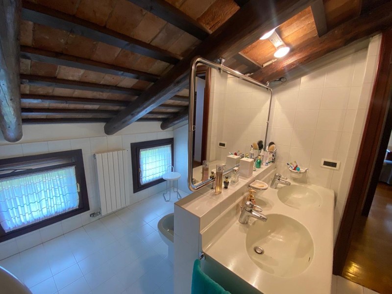 Tutta la casa è caratterizzata da travi a vista, recuperate dalla travatura di una villa veneta, che donano un tocco di autenticità e charme alla struttura. Questa proprietà rappresenta un perfetto connubio tra tradizione e modernità.