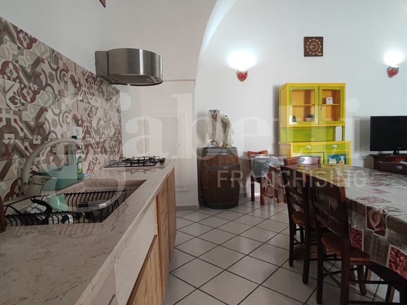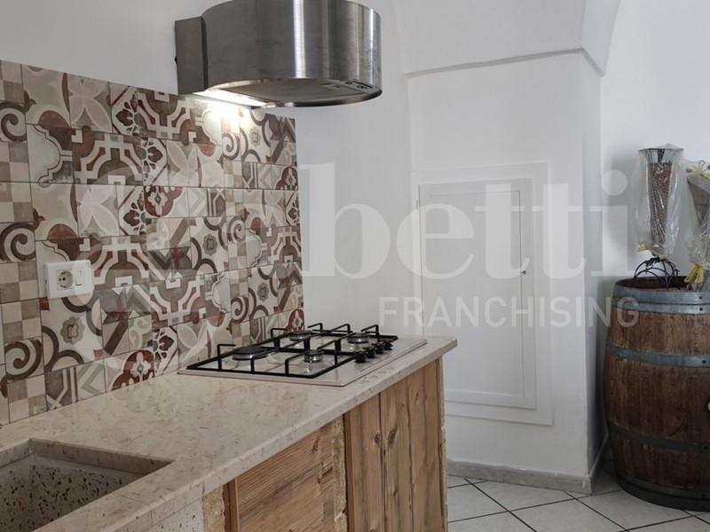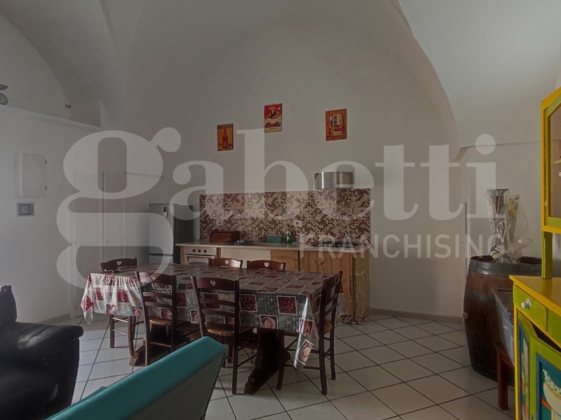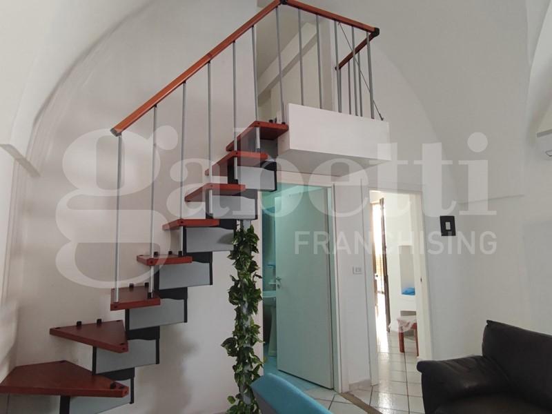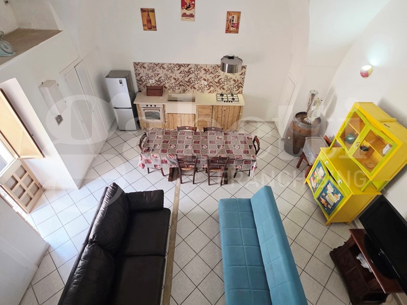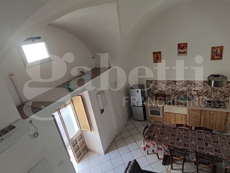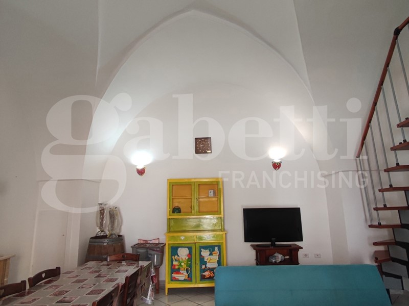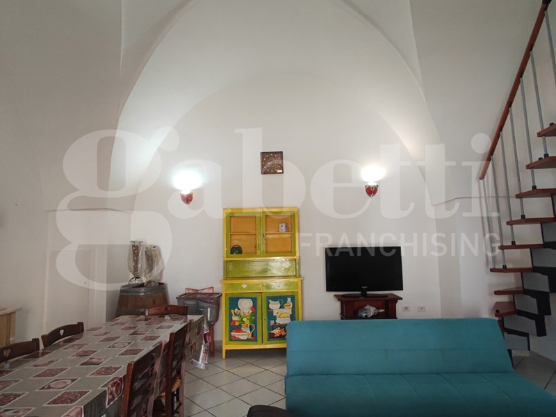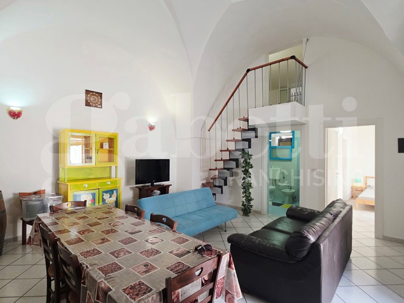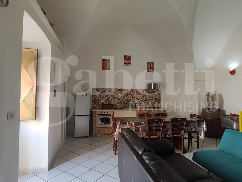 Nella suggestiva cornice del Comune di Ugento, importante centro turistico del Basso Salento, a pochi chilometri dalle bellissime spiagge e dal mare cristallino di Torre San Giovanni, proponiamo grazioso appartamento al piano terra finemente ristrutturato. L'appartamento è sito nei pressi di Via Messapica e di Piazza Pietro Colonna, ha esposizione angolare, una superficie coperta pari a circa 80,00 mq, e si compone di un ampio vano con copertura 'a stella', adibito come salone con angolo cottura in muratura, bagno e cameretta, mentre la camera da letto matrimoniale si trova al piano ammezzato, raggiungibile da una scala a vista installata lungo uno dei muri del vano 'a stella'. Completa l'appartamento un piccolo box con angolo lavanderia.