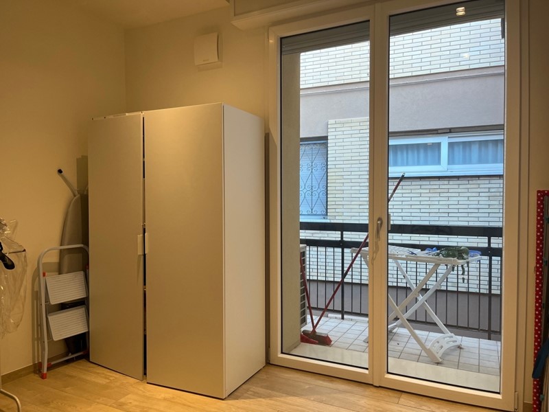 L'unità include un terrazzo che allarga lo spazio domestico verso l'esterno, ideale per momenti di relax all'aperto. Gli infissi sono con doppi vetri, le tapparelle sono elettriche e sono presenti frigorifero e sanitari sospesi, elementi che elevano la praticità quotidiana. La cucina è un angolo cottura integrato, pensato per ottimizzare gli spazi senza rinunciare al comfort.