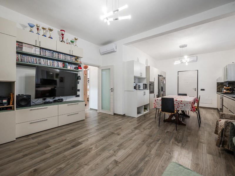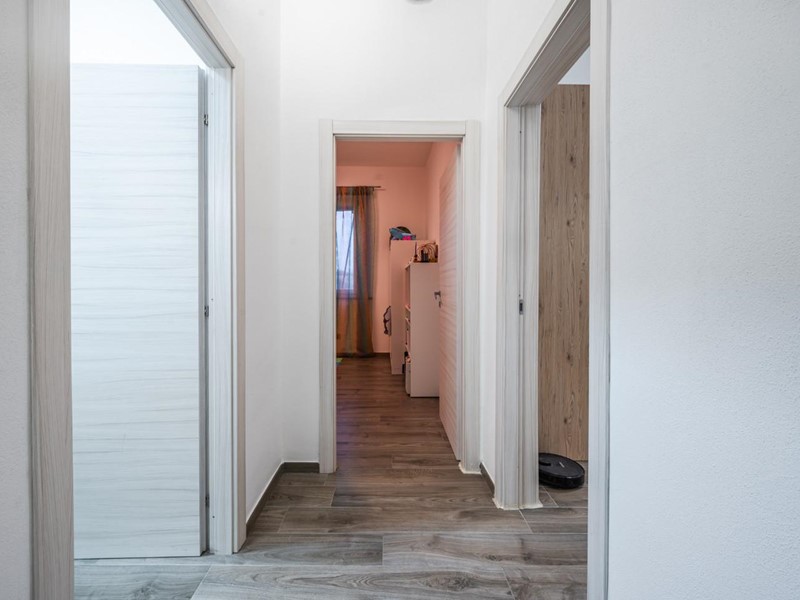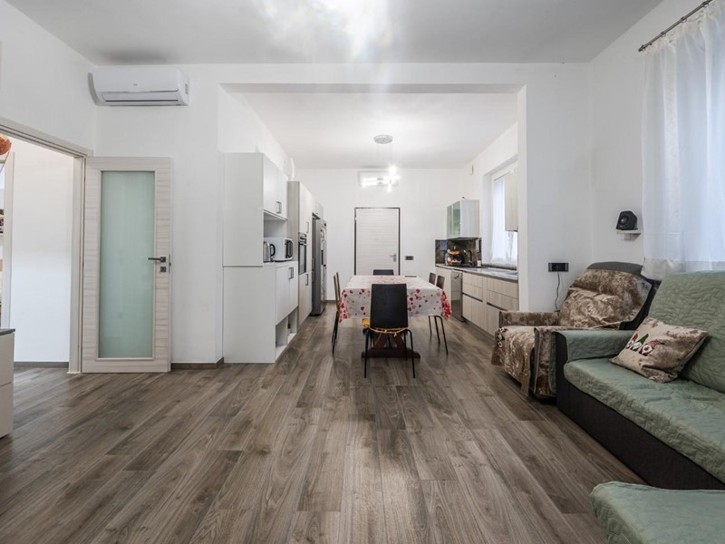 L’abitazione principale è composta da una grande zona giorno open space con soggiorno e cucina, due camere da letto spaziose e due bagni. All’esterno, un portico coperto di 40 mq offre uno spazio ideale per il relax all’aperto.