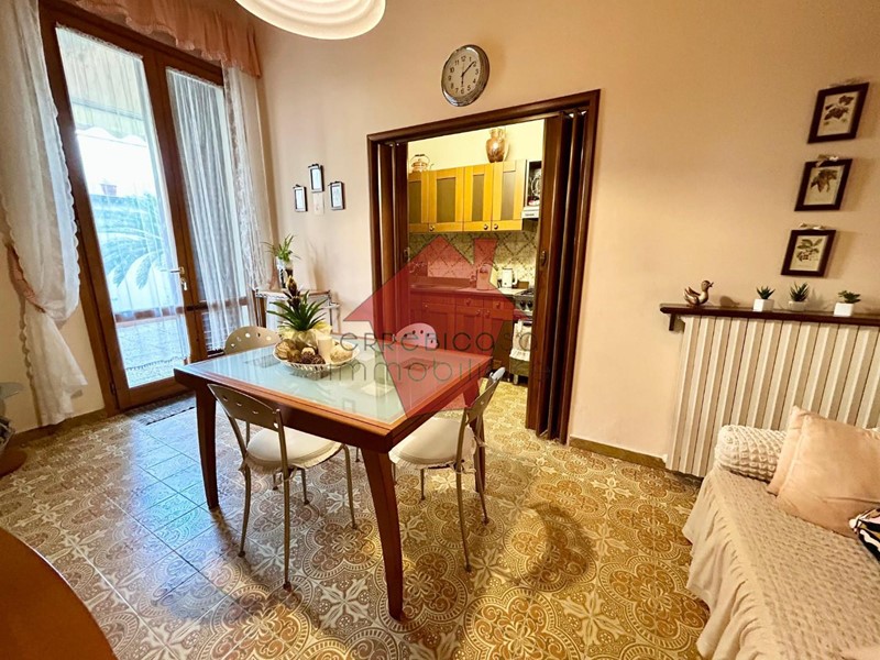 Si accede alla proprietà attraverso il resede anteriore, che conduce all’ingresso principale. L’abitazione si apre su un ampio ingresso, seguito da un luminoso salotto, una cucina abitabile con adiacente cucinotto, e un pratico bagno di servizio/ripostiglio.
