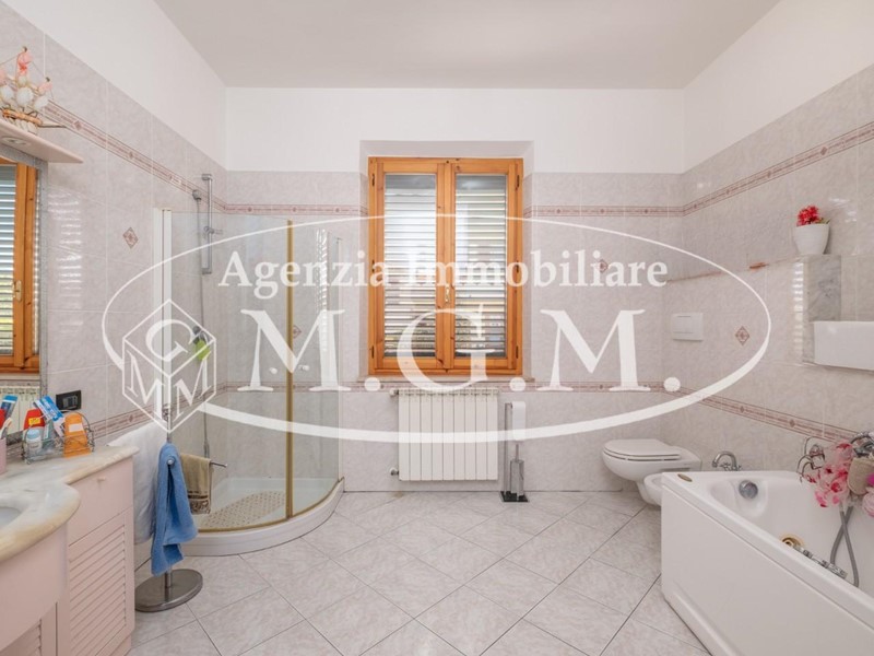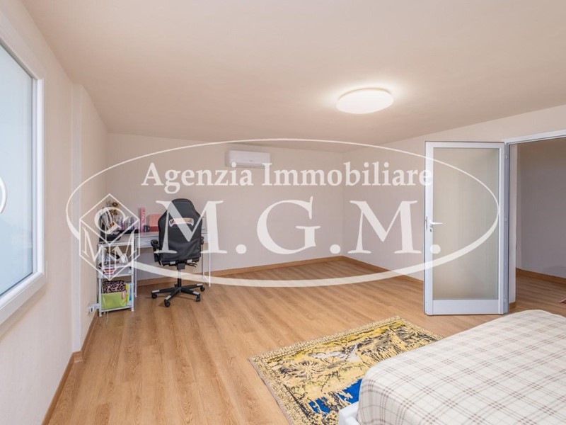 Dal disimpegno notte accediamo ad un comodo locale lavanderia/ripostiglio finestrato. Sempre dal reparto notte accediamo alle due camere matrimoniali di cui una con stanza armadi finestrata (ideale con piccola modifica anche come terza camera). Il bagno padronale è molto grande e ospita sia la vasca che la doccia. La casa è dotata di soffitta.