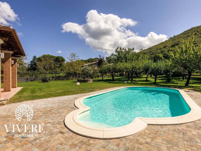 In un piccolo borgo vicino ad Acquasparta e più precisamente a Frazione Casteldelmonte Centro a Terni la VIVERE Real Estate cura la vendita di una villa unifamiliare con piscina che sorge su un terreno di 2500 mq.