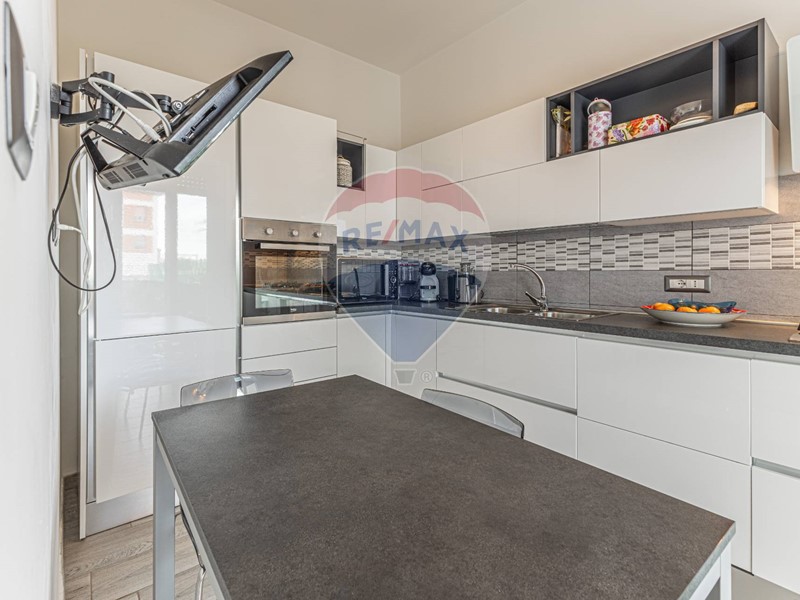 La cucina abitabile, separata e spaziosa, si apre sullo stesso terrazzo: uno spazio ideale per momenti conviviali e relax.