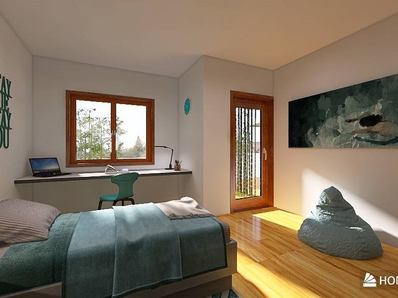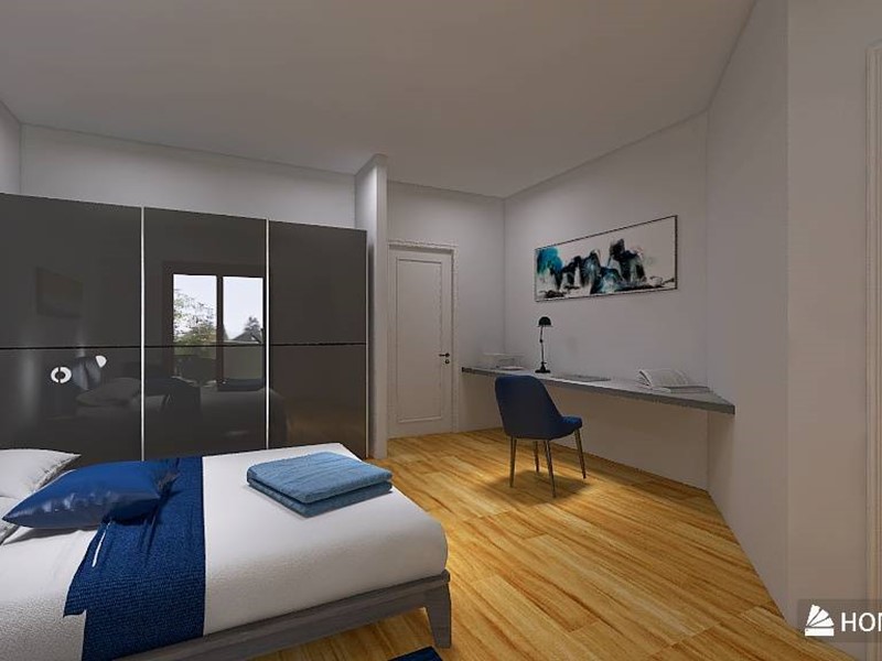 Attualmente una delle due camere matrimoniali dispone di un piccolo servizio; sarebbe semplice ricavare in caso di rivisitazione degli spazi un comodo secondo bagno, come visibile nei render allegati.