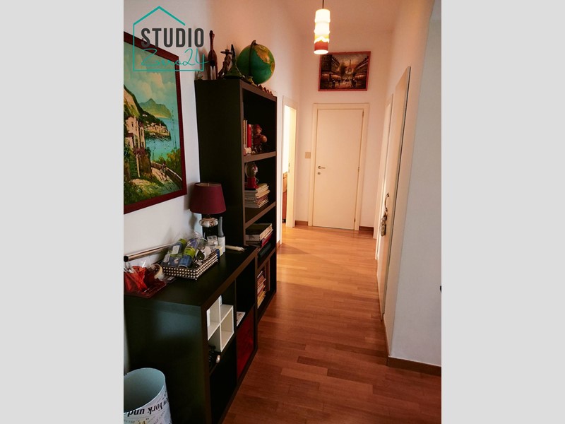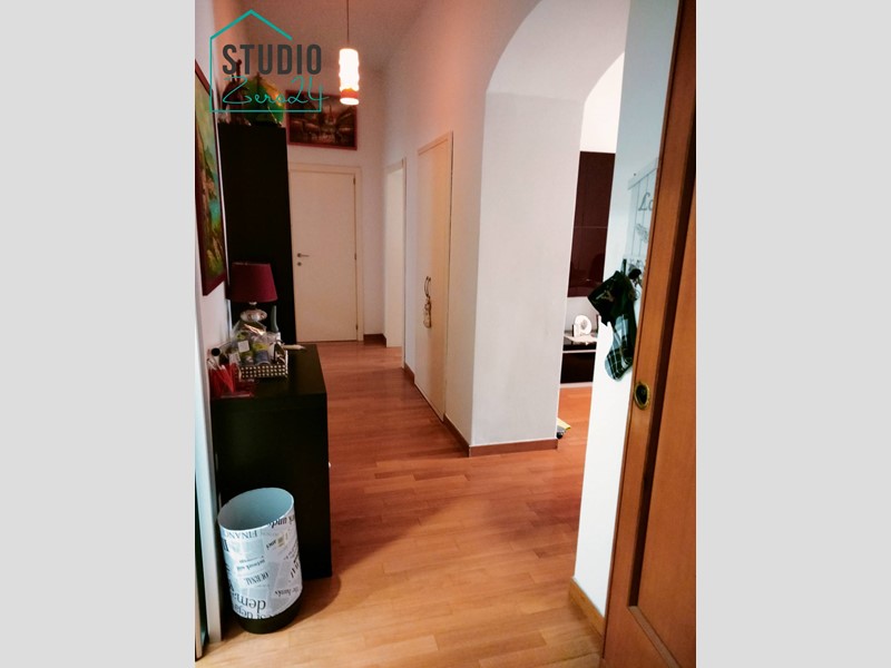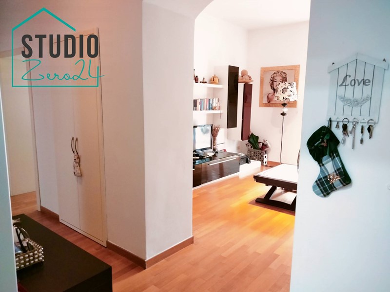 La disposizione degli spazi permette la massima fruibilità, con ingresso, cucina abitabile, soggiorno con balcone, disimpegno con armadiatura a muro, ripostiglio, due camere matrimoniali, delle quali una con balcone, e bagno finestrato con box doccia. A completare la proprietà una comoda cantina al piano terra.