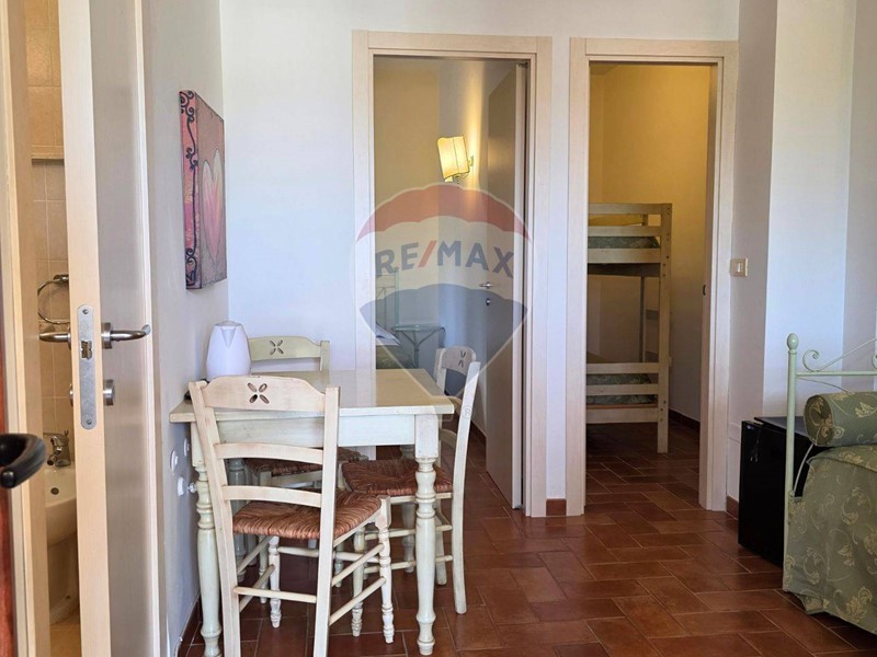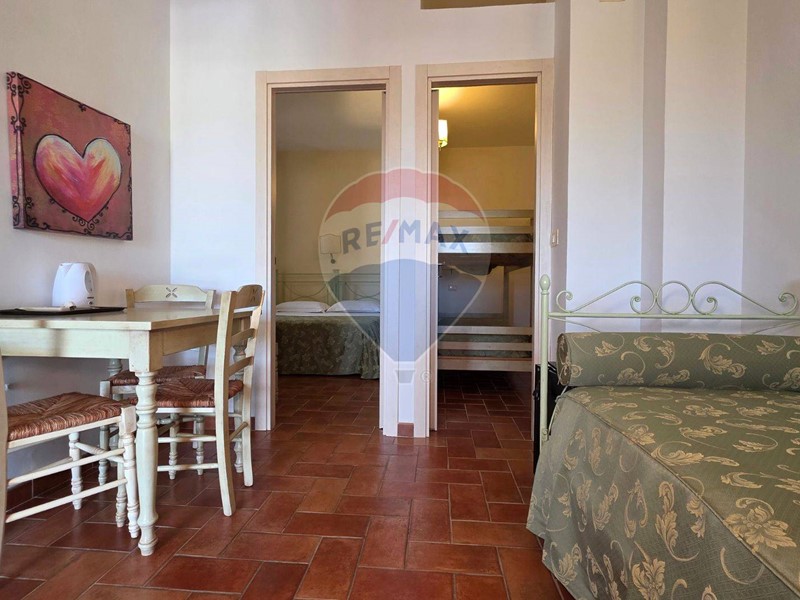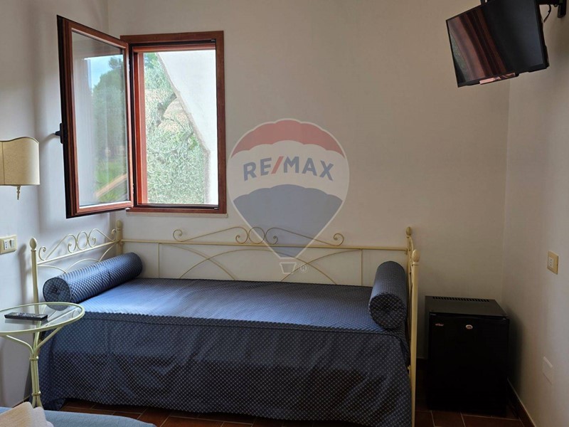 Aree esterne: splendida piscina antistante il fabbricato degli alloggi, perfetta per momenti di relax, attrezzata con docce con servizi come acqua e luce e grande solarium, ideale per godere della vista mozzafiato sul paesaggio circostante.