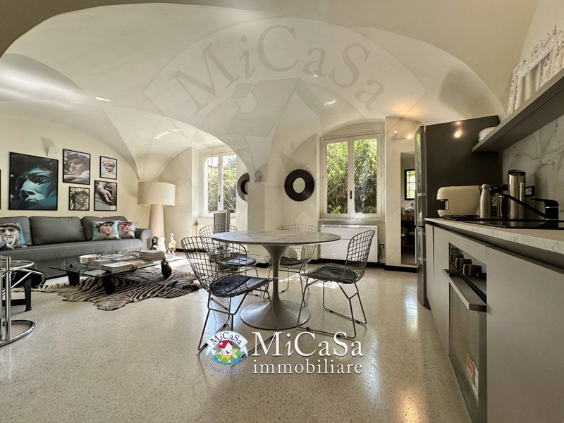 All'interno di un palazzo storico signorile con incantevole parco privato troviamo questo appartamento dal sapore deciso ed accogliente, dato dalla sapiente ristrutturazione con materiali di pregio e dall'affascinante scelta di arredi e complementi d'arredo. La casa caratterizzata da volte a crociera è composta internamente al primo piano da ampio soggiorno con cucina a vista, ripostiglio/lavanderia, camera matrimoniale, cabina armadi e bagno con doccia. Scendendo al piano terra troviamo una seconda zona living con divano letto e bagno privato completo di doccia, oltre all'accesso al delizioso giardino di proprietà, già recintato per un eventuale cagnolino. Questo ambiente, dotato anche di eventuale ingresso indipendente è perfetto sia come stanza ospiti che come ufficio/studio. L'immobile è subito disponibile e viene locato arredato come in foto, con arredi nuovi e di prestigio.