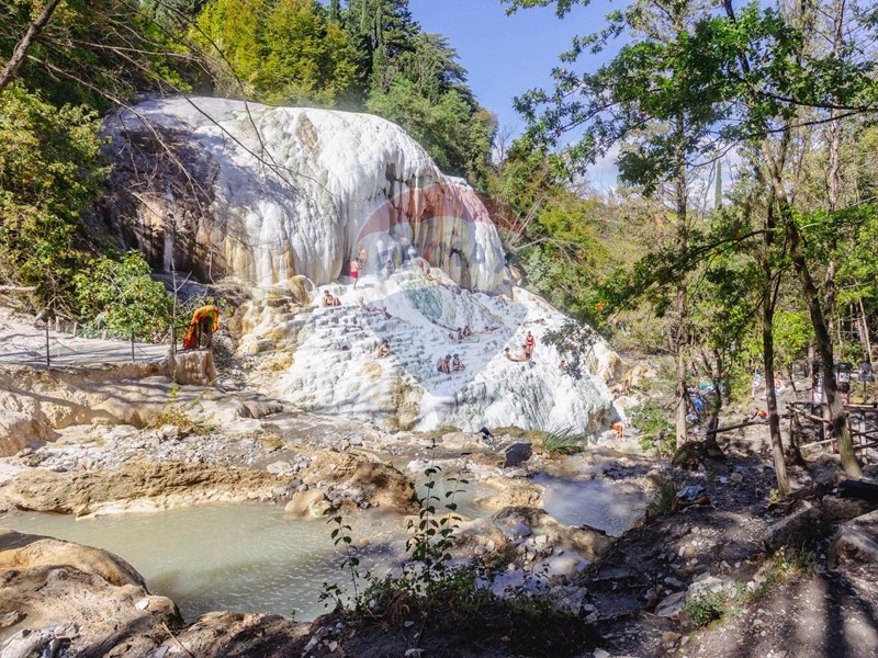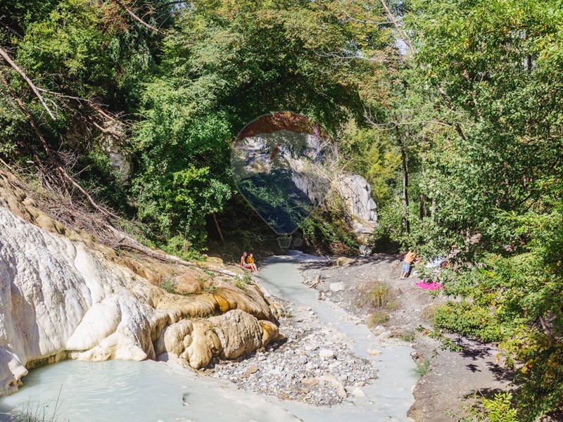 A short walk leads to the Fosso Bianco, the famous thermal stream surrounded by white limestone formations and steaming pools.