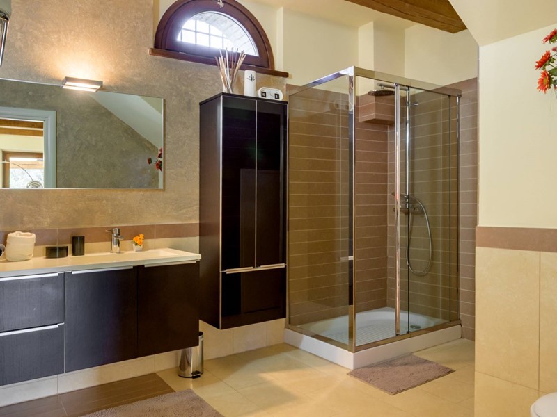 Primo piano: quattro camere matrimoniali, di cui una con bagno en-suite dotato di vasca idromassaggio e ampia cabina armadio e ulteriori due bagni.