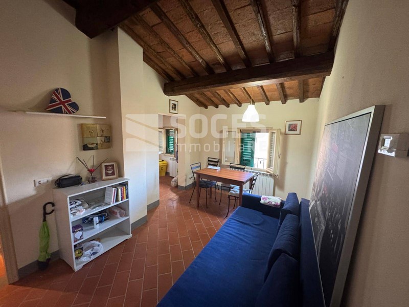 FIGLINE VALDARNO centro storico caratteristico appartamento completamente arredato piano terzo senza ascensore, composto da soggiorno-pranzo, cucinotto, due camere oltre servizio e ripostiglio; recentemente ristrutturato cotto e travi a vista. Affacci gradevoli, tutto finestrato adatto a giovani coppie, disponibile in base alle necessità del cliente. Ottimo.