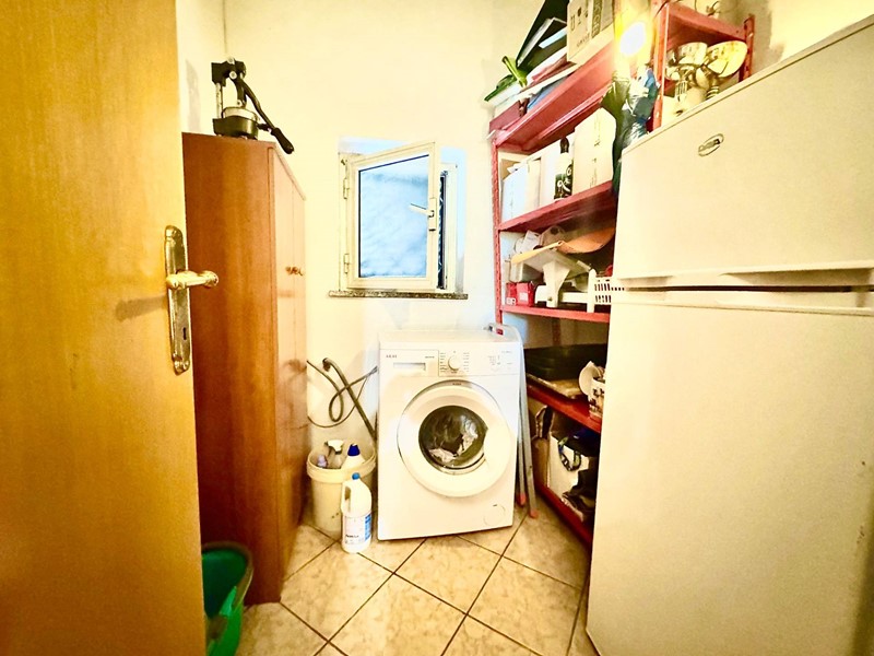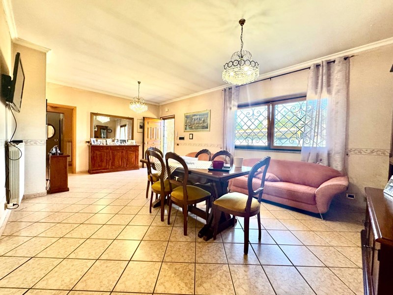 L'abitazione è composta da un ampio salone, una cucina abitabile con camino, tre camere da letto matrimoniali, due camere singole, un locale lavanderia, due bagni entrambi con finestra e un giardino di 300 mq dove è possibile parcheggiare più autovetture. Tutti i vani sono spaziosi con i soffitti alti più di tre metri. Lo stabile si trova in posizione strategica, ben collegata sia con la via Salaria che con il casello autostradale di Castelnuovo di Porto evitando il traffico del centro Paese. Ideale per nuclei familiari numerosi. APE "F".