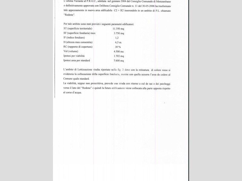 Il lotto di terreno offre l'opportunità di realizzare un progetto residenziale su misura, consentendo agli acquirenti di sviluppare una casa personalizzata in armonia con le proprie esigenze e gusti. Il piano di lottizzazione denominato "Redone" prevede che su 11.350 mq totali, sono edificabili 3.750 mq (superficie fondiaria) con un indice di edificabilità pari a 1,2 e con altezza massima di 6,5 metri.