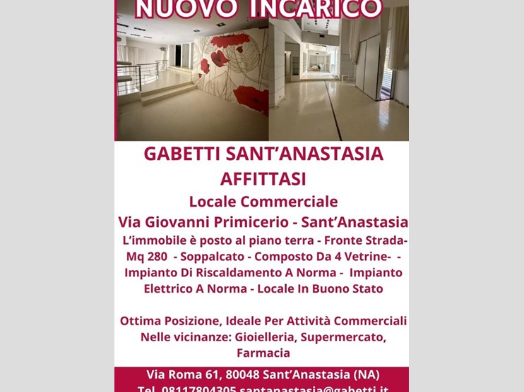 Gabetti Sant'Anastasia fitta locale commerciale in Via Giovanni Primicerio Sant'Anastasia.