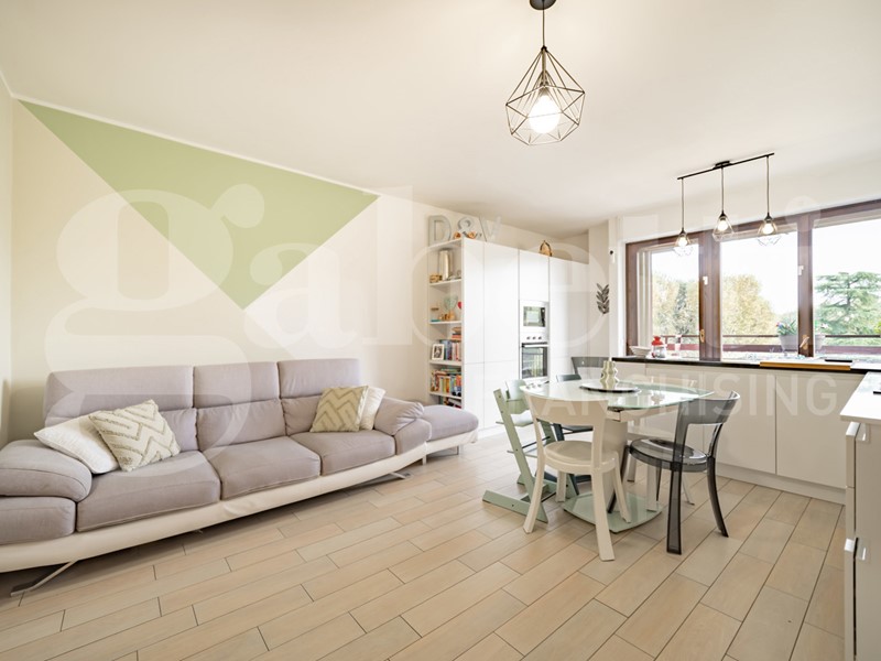 L'immobile, accogliente e luminoso, si apre su un soggiorno con cucina a vista con accesso diretto a un piacevole e panoramico balcone.