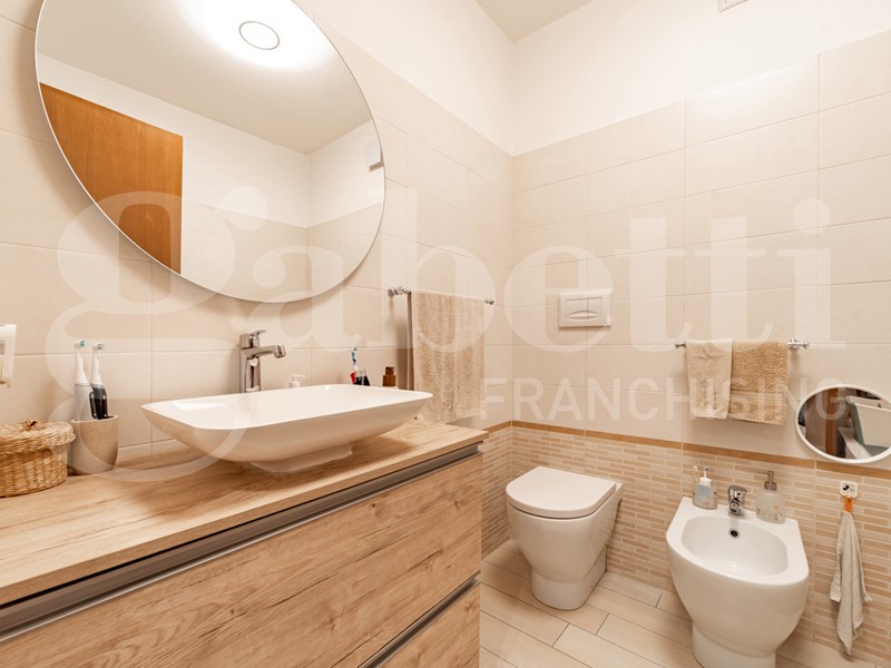 Completano la proprietà: teleriscaldamento, aria condizionata, sistema d'allarme Verisure, tapparelle elettriche, zanzariere, pavimento in gres e posto auto coperto.