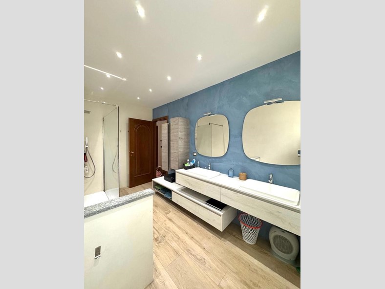 ? Bagno padronale di design con doppi lavabi e doppia doccia