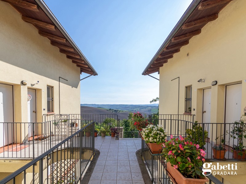 L'immobile si compone di due camere da letto, ideali per una famiglia o per chi desidera una stanza aggiuntiva da adibire a studio o camera per gli ospiti. La zona giorno, luminosa e accogliente, si affaccia su un balcone vivibile, perfetto per godersi il paesaggio collinare e l'aria aperta in totale relax.