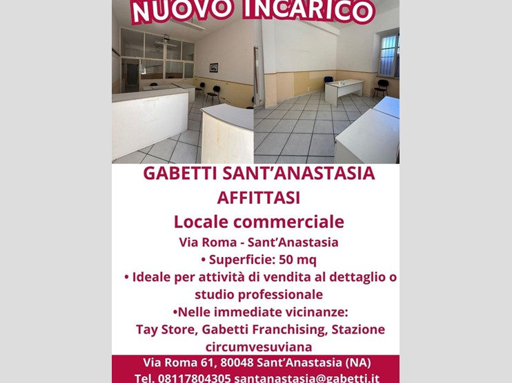 Gabetti Sant'Anastasia Fitta Locale Commerciale In Via Roma Sant'Anastasia. 50 mq, ideale per attività di vendita al dettaglio o studio professionale.