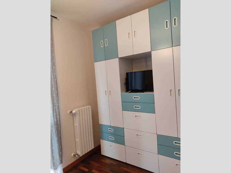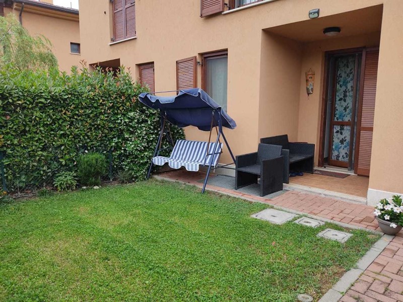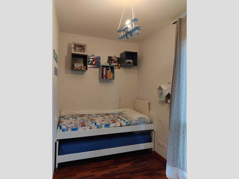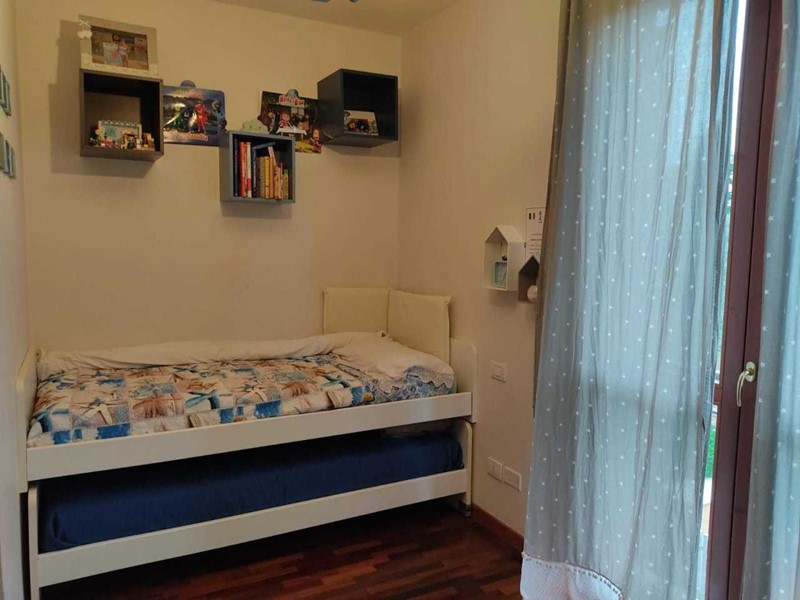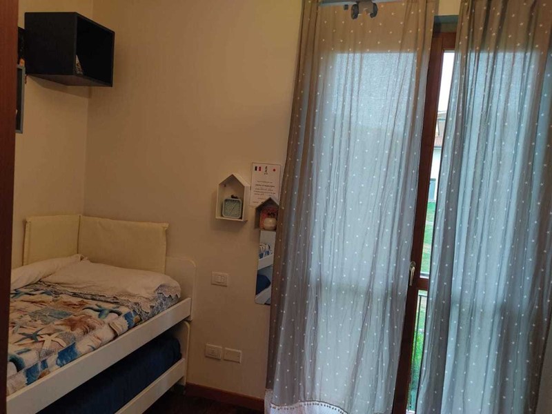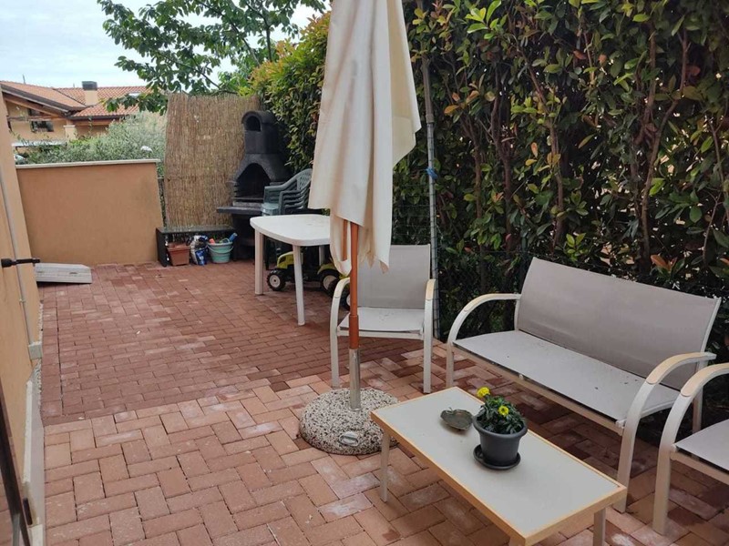 San Savino Villa a schiera in bifamiliare. Piano terra/ seminterrato garage, tavernetta, piano terra/primo: soggiorno, cucinotto, bagno, balcone .e giardino. Piano primo 2 camere, bagno e un balcone e mansarda con terza camera. Parquett zona notte, aria condizionata e allarme.