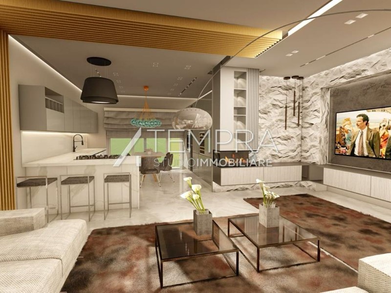 Gli spazi interni sono ampi e funzionali: la zona living, moderna e ben disposta, rappresenta il cuore della casa, perfetta per accogliere momenti conviviali e di relax. Completano la disposizione due bagni, ambienti notte ben distribuiti e una doppia esposizione che garantisce ottima luminosità.