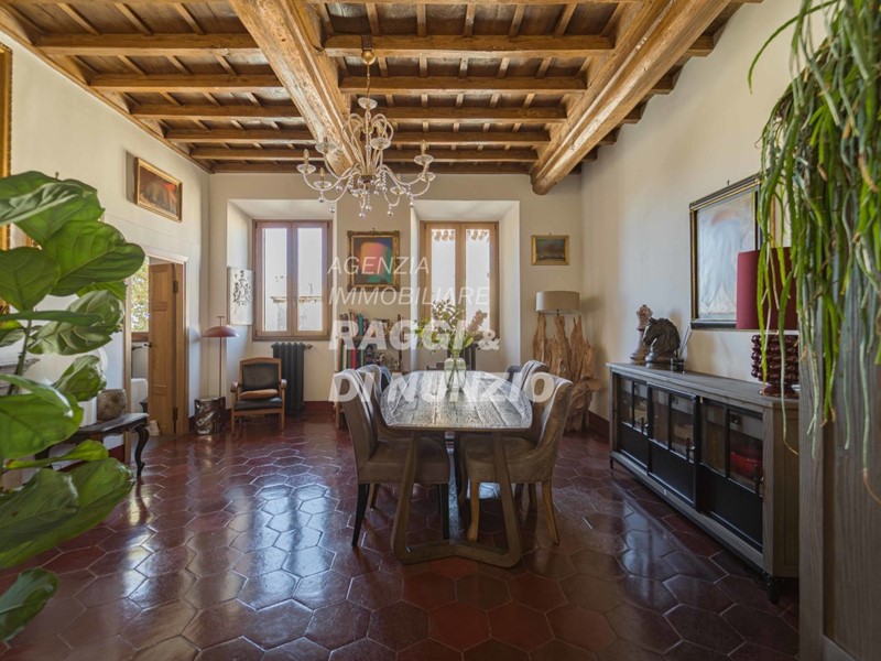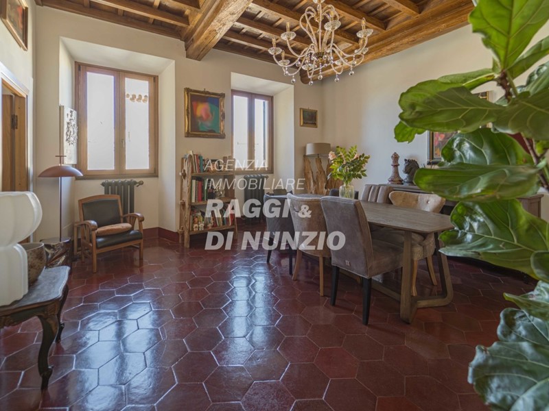 In posizione centrale, proponiamo in vendita un prestigioso appartamento situato al secondo piano di un piccolo stabile d’epoca, privo di ascensore, che conserva intatto il fascino del tempo. L’ingresso conduce a un' ampia sala da pranzo caratterizzato da alti soffitti con travi in legno originali a vista, grandi finestre in rovere massello a taglio termico e acustico, e un antico camino in marmo che impreziosisce l’ambiente. L’immobile dispone di due camere, di cui una attualmente adibita a zona living, con uno splendido affaccio su Roma e sul Palazzo Vescovile, ed una dotata di doppia finestra. La cucina, funzionale e ben distribuita, offre accesso diretto a un terrazzino di circa 7 mq, ideale per momenti di relax all’aperto. Il bagno è dotato di vasca, con possibilità di realizzare un secondo servizio en suite. Il restauro dell'appartamento ha previsto il consolidamento dei solai e il recupero dei pavimenti originali risalenti al periodo ottocentesco. L’appartamento è termoautonomo e dispone di raffinati caloriferi in ghisa, realizzati su misura da un artigiano francese, che rievocano lo stile e l’eleganza dell’epoca di costruzione.