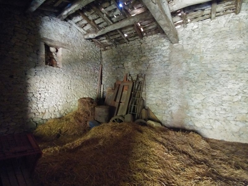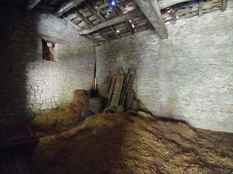 Il fabbricato si compone di portico sul fronte strada, fienile, sottostante stalla con poste e più vani ed ulteriore portico sul retro.