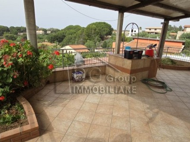 Zona Sala Panorama villetta unifamiliare con vista mare e 2000 mq di terreno.\n\nQuesta proprietà offre una superficie abitabile di circa 85 mq compreso una spaziosa veranda a pergolato di circa 40 mq che permette di godere di magnifiche viste sul mare. L'immobile è immerso in un ampio lotto di circa 2000 mq in parte giardino ed in parte spiazzo per posteggio auto. Ideale per chi cerca tranquillità e privacy. La casa si distingue per la sua posizione, vicina sia al mare che alla città, per l'ampio spazio esterno, perfetto per cene all'aperto e momenti di relax.\nAl suo interno è composta da un ampia veranda con vista mare, ingresso in un soggiorno con cucina in muratura a vista, 3 camere da letto, di cui una matrimoniale e due singole, bagno con vasca \nLa casa è dotata di doppi condizionatori e un magazzino adiecente di 32 metri.