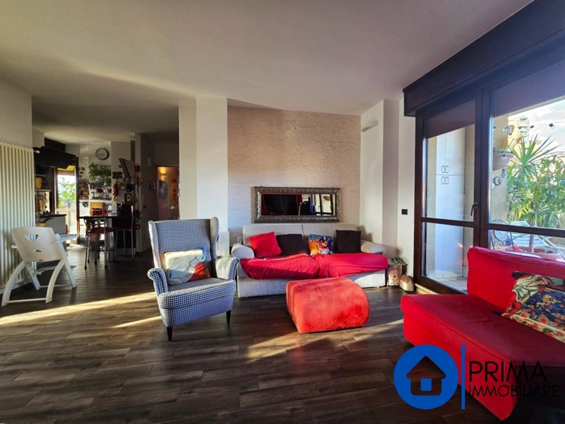 Particolare, coloratissimo e dalla grande personalità! Questo appartamento è unico in tutto e per tutto, dai dettagli unici e vivaci ai meravigliosi terrazzi panoramici.\nL'appartamento che vi proponiamo si trova al piano medio di un palazzo edificato nei primi anni 2000, antisismico, termo autonomo e dotato di doppio ascensore.\nEntriamo nella proprietà dal portoncino blindato e si apre davanti ai nostri occhi una bellissima zona giorno con grandi vetrate scorrevoli sulla destra e sulla sinistra che portano a due differenti terrazzi abitabili dalla straordinaria metratura rispettivamente affacciati ad est e a ovest, in uno dei quali è stata create una piccola sun room e una zona ombreggiata con tettoia dove poter mangiare all'aria aperta. \nOltre ad un'ariosa zona living dove rilassarsi e vedere film e mangiare con gli amici troviamo una moderna cucina con penisola anch'essa con porta finestra al terrazzo.\nLa zona notte rimane sapientemente divisa dalla zona giorno grazie ad un disimpegno al quale si accede da una particolare porta in vetro murano scorrevole, qui troviamo 3 camere da letto matrimoniali e due bagni, entrambi con finestra e con doccia. \nL'immobile è stato totalmente ristrutturato 10 anni fa ca., troviamo split per l'aria condizionata in tutta l'abitazione, un pavimento moderno effetto legno omogeneo in tutta la casa, eleganti porte a filo muro dai colori intensi e i bagni totalmente rinnovati co rivestimenti e sanitari dal taglio contemporaneo.\nLa proprietà è completa di cantina e posto auto condominiale.\nL'immobile è perfetto per famiglie che stanno cercando una soluzione dal carattere deciso, che offra spazi ampi da vivere, dove accogliere familiari e amici e divertirsi sui grandi terrazzi.\nLa zona è comoda per raggiungere il centro in pochi minuti, i servizi sono vicini come poste, tabaccheria, rosticceria, supermercato e fermate dell'autobus.\nContattaci e fissa una visita, una casa così non si trova tutti i giorni!\n - Maggiori Dettagli: Porta blindata, Videocitofono, Cantina