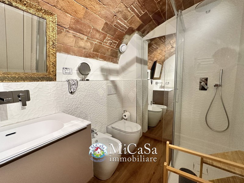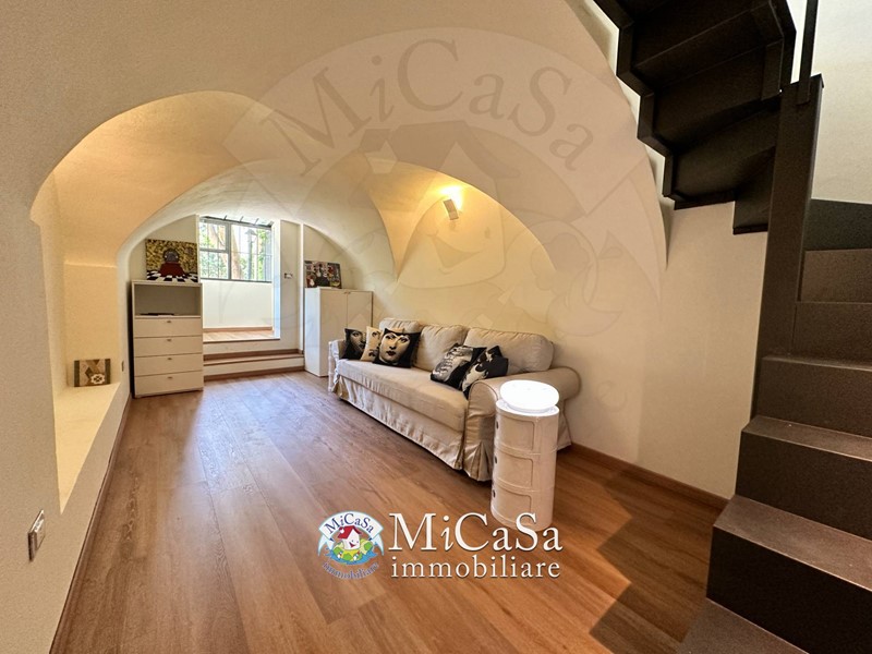All'interno di un palazzo storico signorile con incantevole parco privato troviamo questo appartamento dal sapore deciso ed accogliente, dato dalla sapiente ristrutturazione con materiali di pregio e dall'affascinante scelta di arredi e complementi d'arredo. La casa caratterizzata da volte a crociera è composta internamente al primo piano da ampio soggiorno con cucina a vista, ripostiglio/lavanderia, camera matrimoniale, cabina armadi e bagno con doccia. Scendendo al piano terra troviamo una seconda zona living con divano letto e bagno privato completo di doccia, oltre all'accesso al delizioso giardino di proprietà, già recintato per un eventuale cagnolino. Questo ambiente, dotato anche di eventuale ingresso indipendente è perfetto sia come stanza ospiti che come ufficio/studio. L'immobile è subito disponibile e viene locato arredato come in foto, con arredi nuovi e di prestigio.
